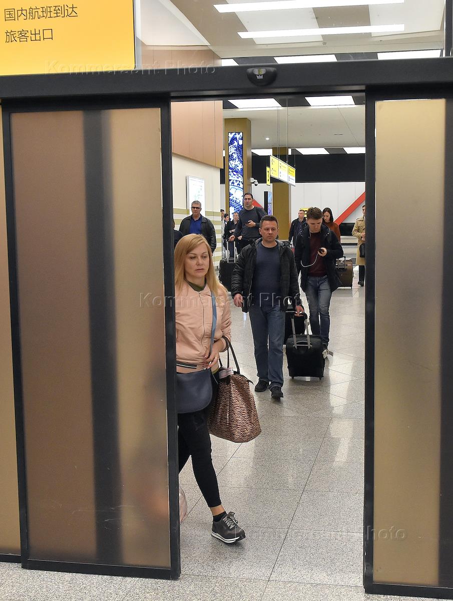 Жанровая фотография. Пассажиры в терминале B аэропорта Шереметьево у выхода для пассажиров, прибывших внутренними рейсами.