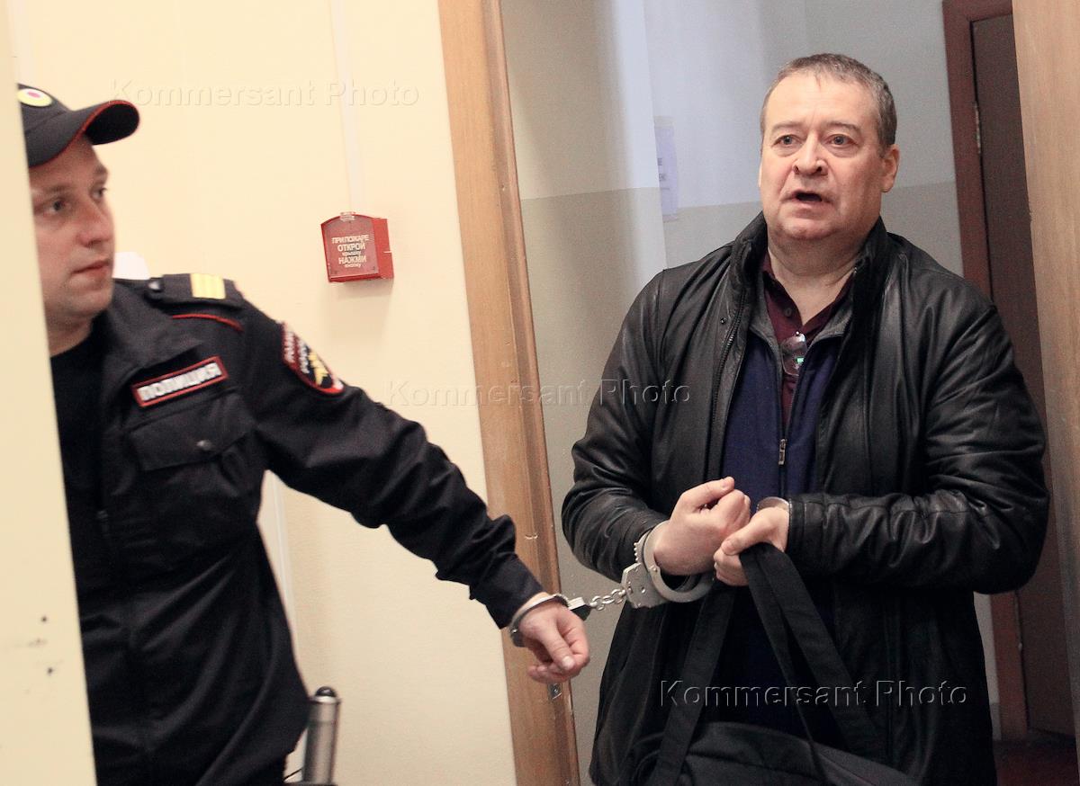 Бывший глава Республики Марий-Эл Леонид Маркелов (в центре), обвиняемый в коррупции, перед началом заседания Нижегородского районного суда.