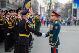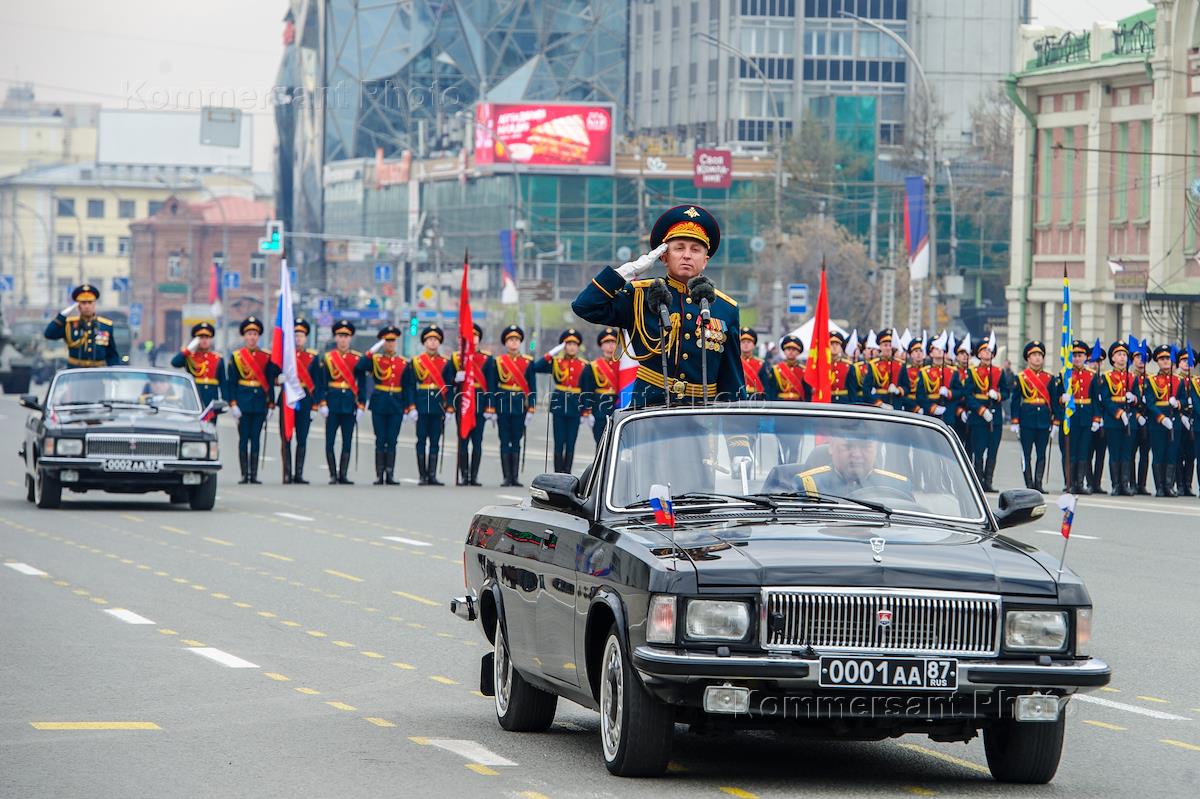 Репетиция парада Победы, посвященного 74-й годовщине Победы в Великой Отечественной войне, на площади имени Ленина в Новосибирске. Командующий 41-й общевойсковой армией Яков Резанцев (справа) во время репетиции.