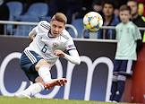 Чемпионат Европы по футболу U17. 1-й тур. Групповой этап. Матч между юношескими сборными командами России и Португалии на стадионе "Уайтхолл". Игрок сборной России Кирилл Щетинин во время матча.