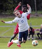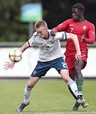 Чемпионат Европы по футболу U17. 1-й тур. Групповой этап. Матч между юношескими сборными командами России и Португалии на стадионе "Уайтхолл". Игрок сборной России Даниил Денисов (слева) во время матча.