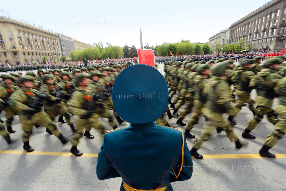 Празднование Дня Победы. Военный парад, посвященный 74-й годовщине Победы в Великой Отечественной войне, прошел на площади Павших Борцов. Военнослужащие во время парада.
