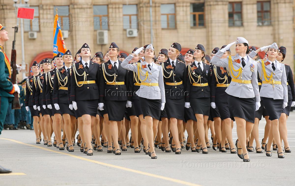 Празднование Дня Победы. Военный парад, посвященный 74-й годовщине Победы в Великой Отечественной войне, прошел на площади Павших Борцов. Женщины-военнослужащие во время парада.