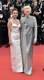 72-й Каннский международный кинофестиваль 2019 / Festival de Cannes 2019. Церемония открытия кинофестиваля. Американская певица Селена Гомес (слева) и актриса Тильда Суинтон (справа) на церемонии и показе фильма режиссера Джима Джармуша "Мертвые не умирают" во Дворце фестивалей.