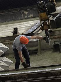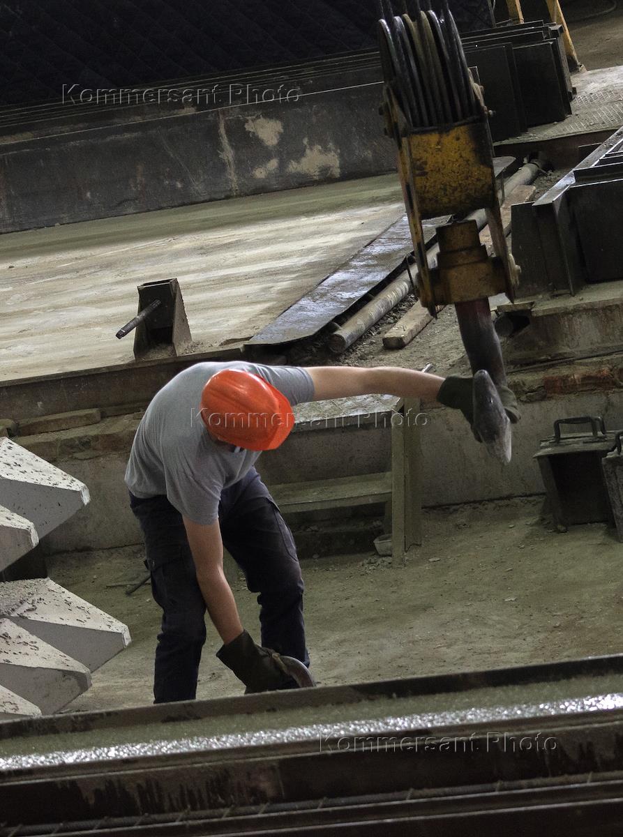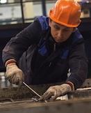 Производственный цех предприятия ООО "Казанский ДСК". Сварщик за работой.