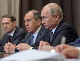 Рабочая поездка президента России Владимира Путина в Сочи. Слева направо: директор Службы внешней разведки России Сергей Нарышкин, министр иностранных дел России Сергей Лавров и президент России Владимир Путин во время встречи с государственным секретарем США Майком Помпео в резиденции "Бочаров ручей".