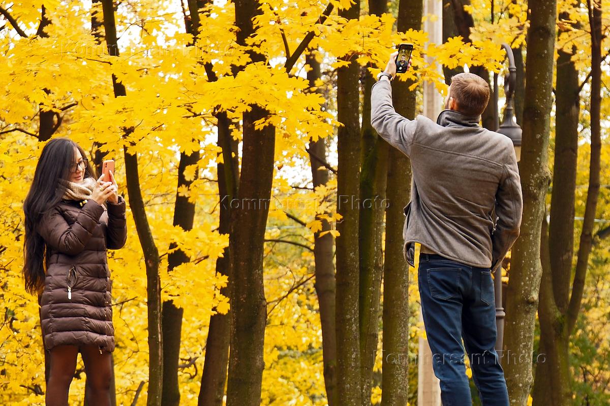 Жанровая фотография. Молодые люди гуляют в парке.