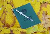 Жанровая фотография. Трудовая книжка, медицинский шприц и осенние листья.