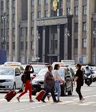 Виды Москвы. Люди гуляют по улице Охотный ряд.
