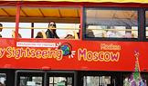 Жанровая фотография. Туристический двухэтажный автобус с туристами во время экскурсии.