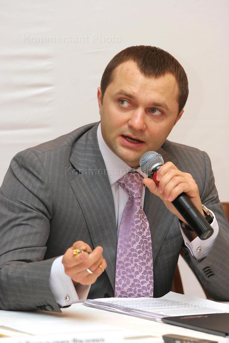 Президент холдинга "Сибирский цемент" Андрей Муравьев во время пресс-конференции.