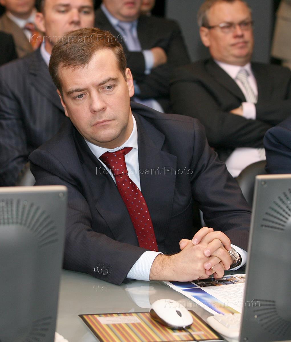 Первый заместитель председателя Правительства России Дмитрий Медведев во время посещения компании ОАО "SITRONICS" (Ситроникс).