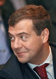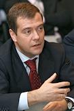Первый заместитель председателя Правительства России Дмитрий Медведев (слева) во время посещения компании ОАО "SITRONICS" (Ситроникс).