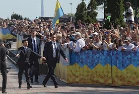 Церемония инаугурации президента Украины Владимира Зеленского прошла в здании Верховной Рады Украины. Хители города и гости перед зданием Верховной Рады Украины во время церемонии.