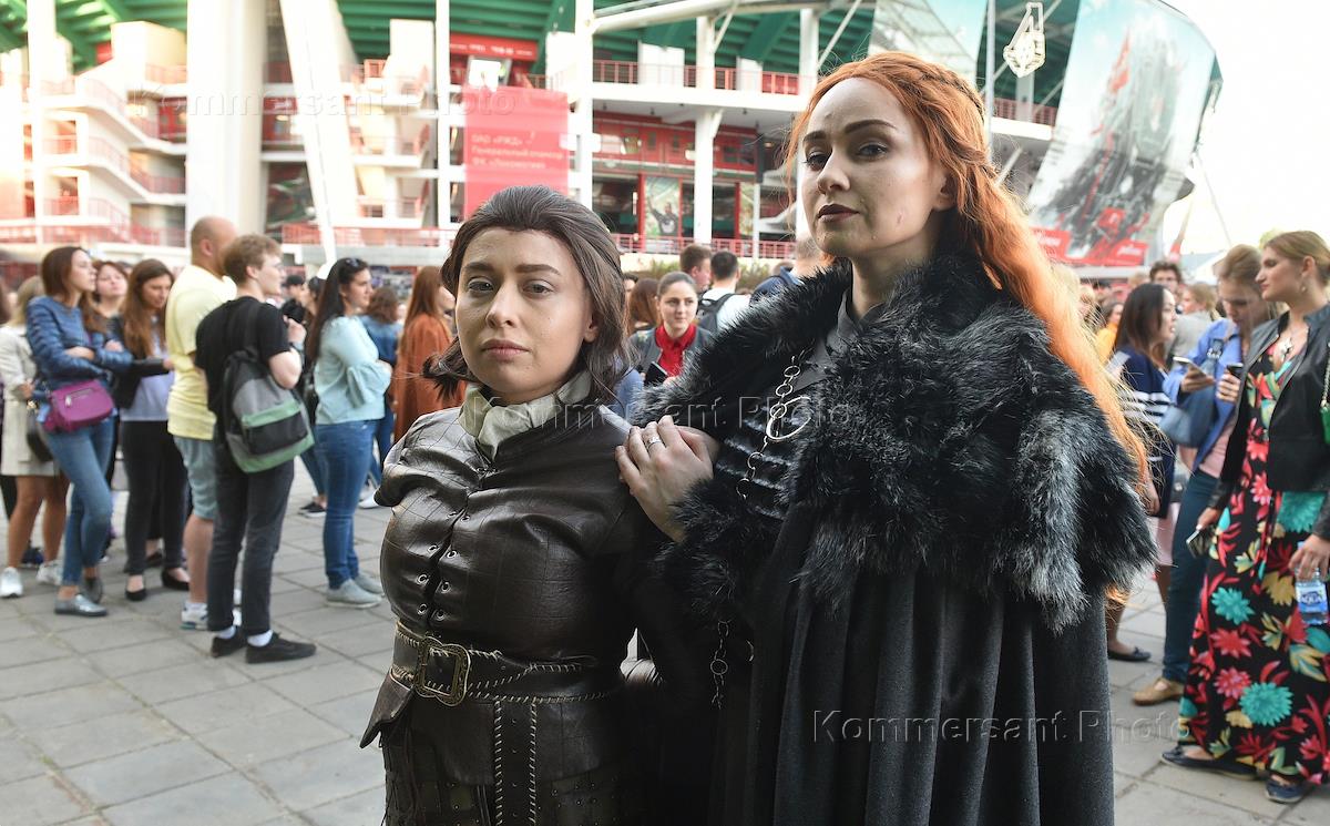 Участники просмотра последней серии финального сезона сериала "Игра Престолов" на стадионе "РЖД Арена".