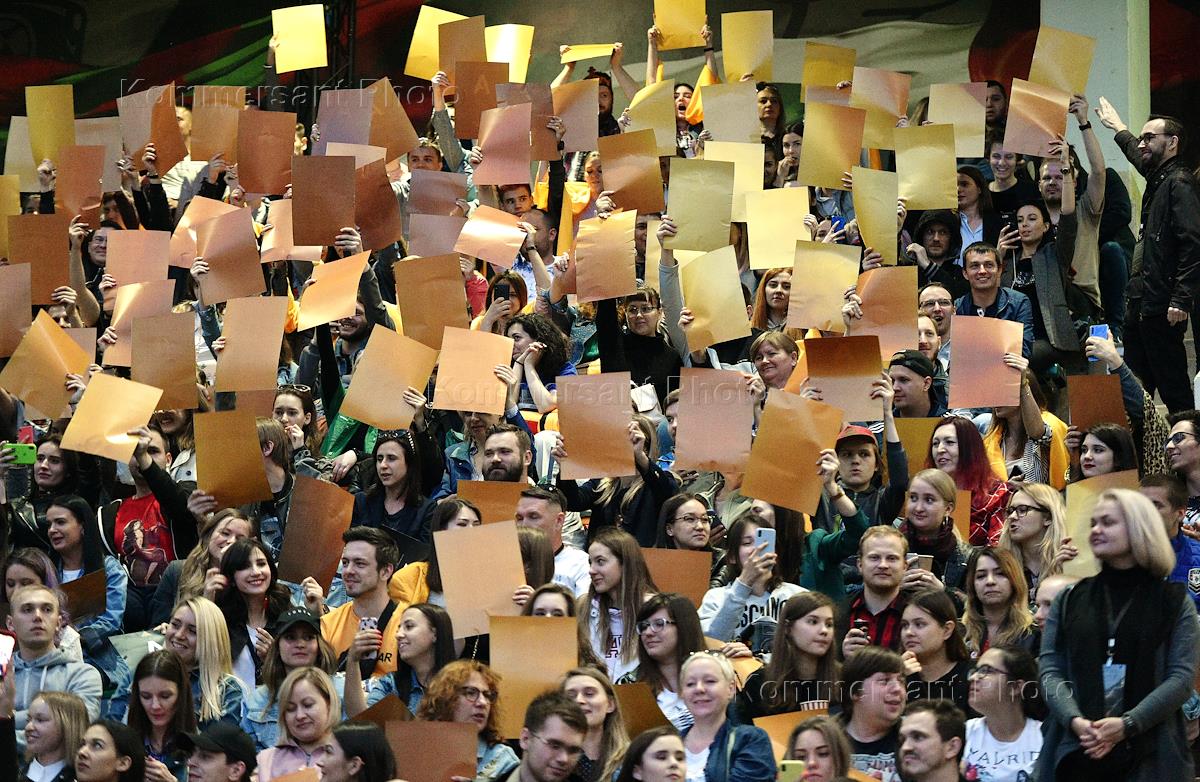 Участники просмотра последней серии финального сезона сериала "Игра Престолов" на стадионе "РЖД Арена".