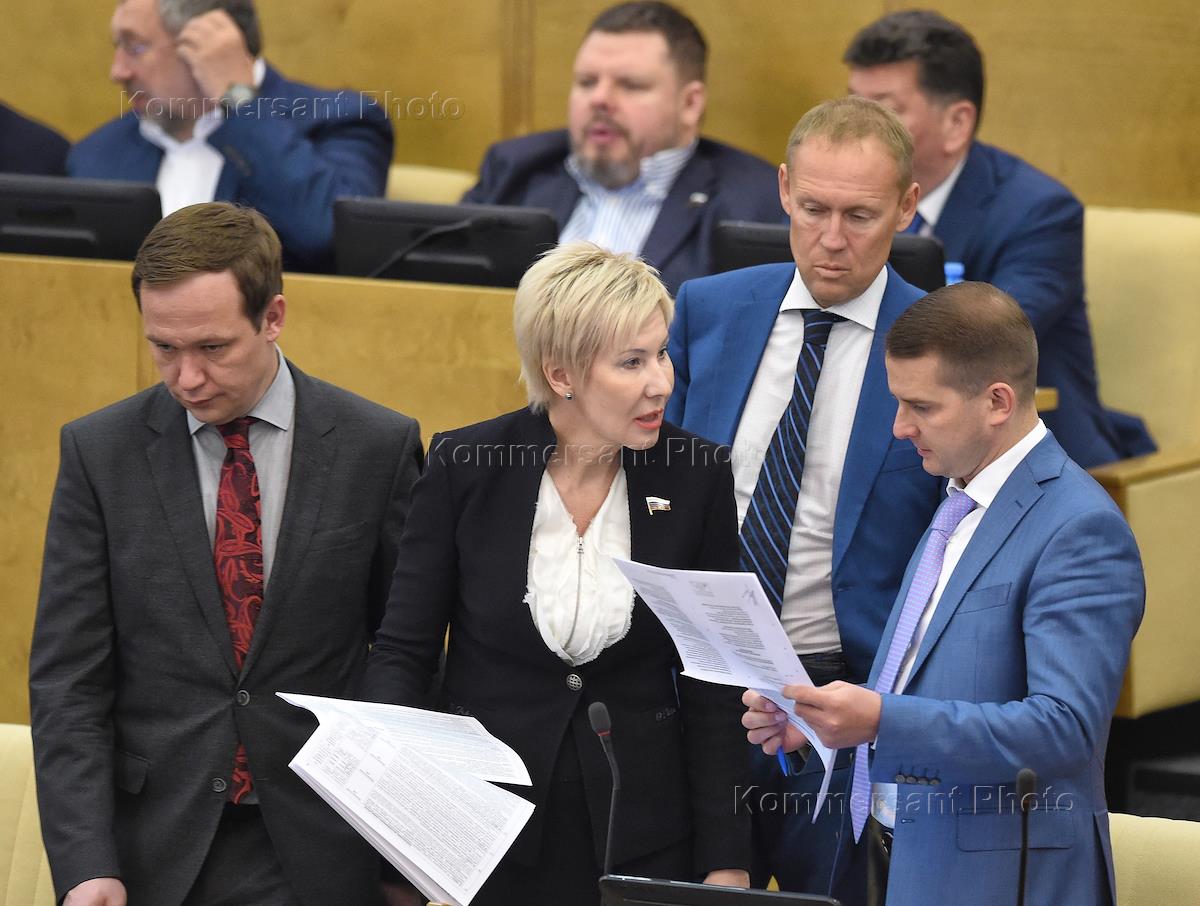 Пленарное заседание Государственной думы (ГД) России. Председатель комитета ГД России по контролю и Регламенту Ольга Савастьянова (в центре) перед началом заседания.