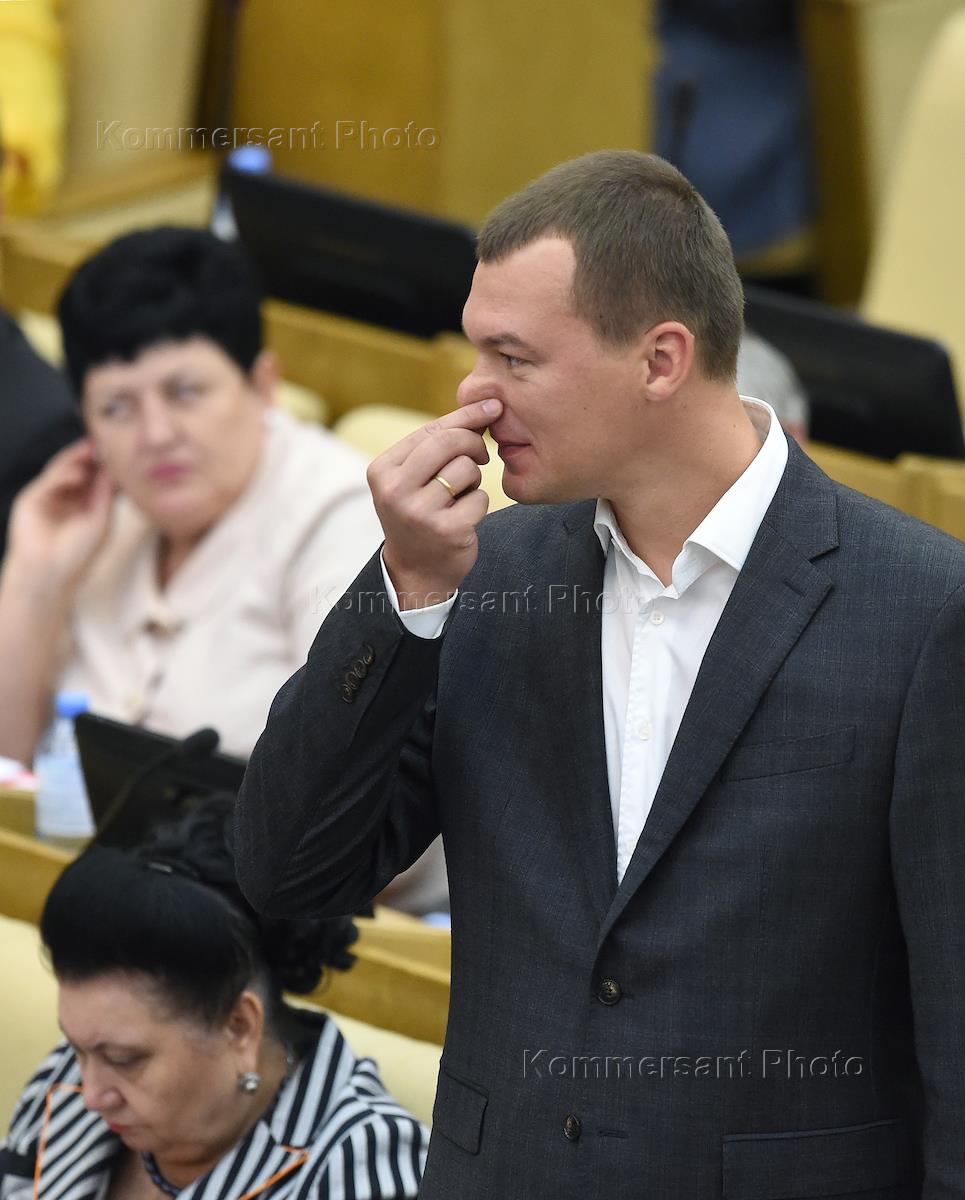 Пленарное заседание Государственной думы (ГД) России. Председатель комитета ГД России по физической культуре, спорту, туризму и делам молодежи Михаил Дегтярев перед началом заседания.