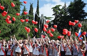 Учащиеся средней школы № 2 во время празднования "Последнего звонка".