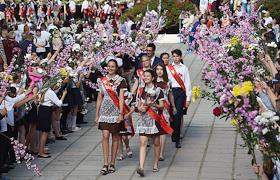 Учащиеся средней школы № 2 во время празднования "Последнего звонка".