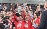 Кубок России по футболу "Олимп". Финал. Матч между командами "Локомотив" (Москва) - "Урал" (Екатеринбург) на стадионе "Самара Арена". Игроки команды "Локомотив" и главный тренер команды "Локомотив" Юрий Семин (в центре) во время церемонии награждения.