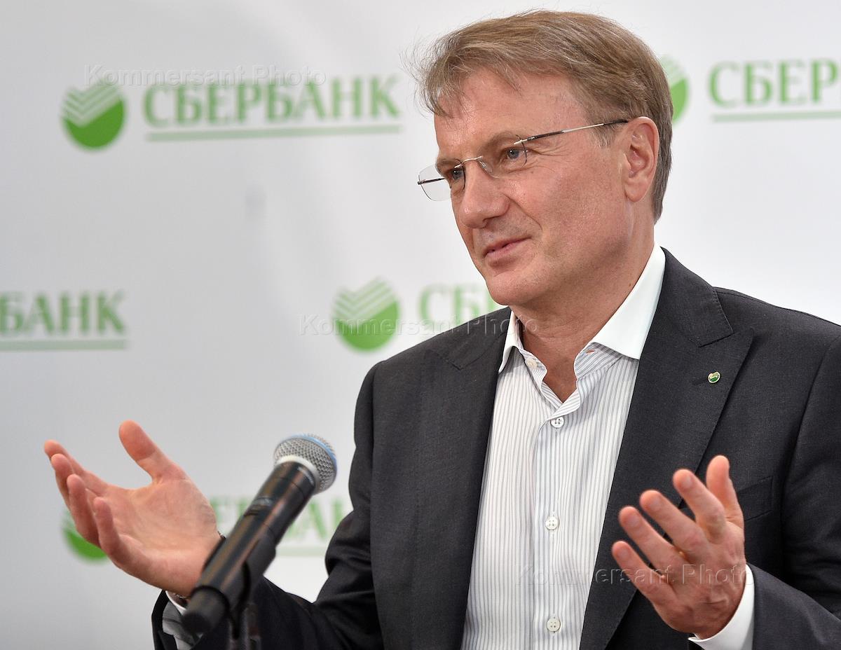 Председатель правления Сбербанка России Герман Греф во время пресс-конференции по итогам годового общего собрания акционеров ПАО "Сбербанк".