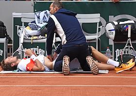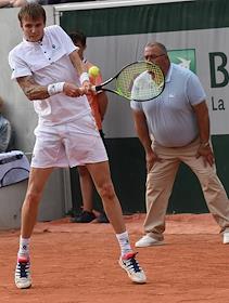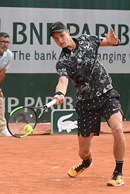 Открытый чемпионат Франции по теннису Roland Garros. Мужской одиночный разряд. 1-й круг. Немецкий теннисист Рудольф Моллекер во время матча с российским теннисистом Александром Бубликом.