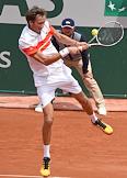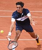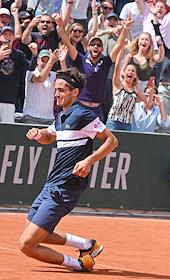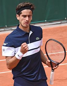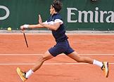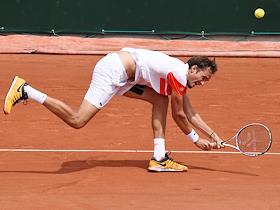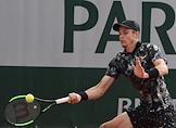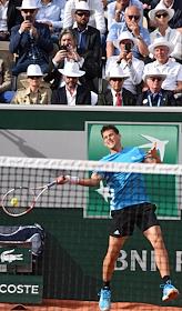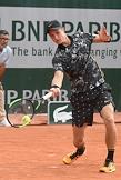 Открытый чемпионат Франции по теннису Roland Garros. Мужской одиночный разряд. 1-й круг. Австрийский теннисистДоминик Тим во время матча с американским теннисистом Томми Полом.