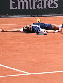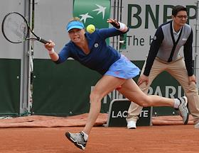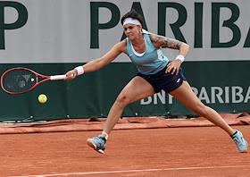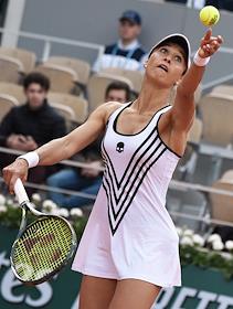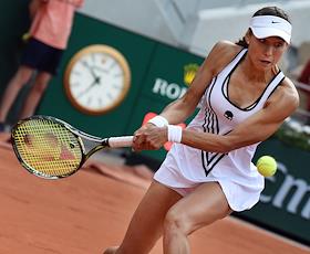 Открытый чемпионат Франции по теннису Roland Garros. 1-й круг. Теннисистка Алена Большова-Задойнова (Испания) во время матча с российской теннисисткой Верой Звонаревой.
