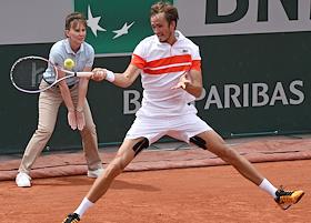 Открытый чемпионат Франции по теннису Roland Garros. Мужской одиночный разряд. 1-й круг. Российский теннисист Даниил Медведев в матче против французского теннисиста Пьер-Юга Эрбера.