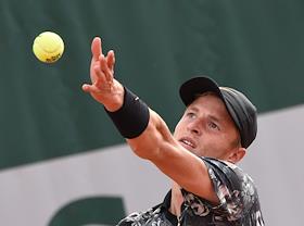 Открытый чемпионат Франции по теннису Roland Garros. Мужской одиночный разряд. 1-й круг. Российский теннисист Александр Бублик во время матча с немецким теннисистом Рудольфом Моллекером.