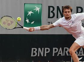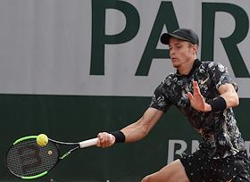 Открытый чемпионат Франции по теннису Roland Garros. Мужской одиночный разряд. 1-й круг. Французский теннисист Пьер-Юг Эрбер в матче против российского теннисиста Даниила Медведева.