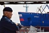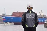 Церемония спуска на воду ледокола "Урал" на "Балтийском судостроительном заводе".