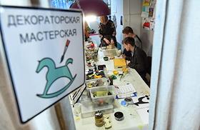 Дома сопровождаемого проживания. Жители дома на занятии в декоративной мастерской.