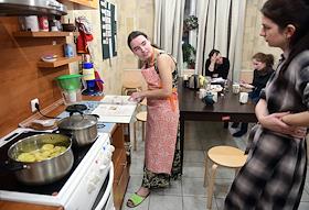 Дома сопровождаемого проживания. Жители дома на кухне готовят еду.