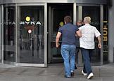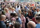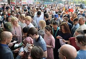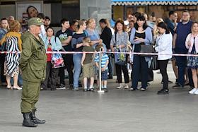 Посетители ТРЦ "Щука" во время эвакуации после анонимного сообщения об угрозе взрыва.