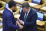 Пленарное заседание Государственной думы (ГД) России. Заместитель председателя комитета ГД России по жилищной политике и жилищно-коммунальному хозяйству Вадим Булавинов (справа) во время заседания.