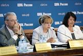 Заседание Центральной избирательной комиссии (ЦИК) России. Слева направо: заместитель председателя ЦИК России Николай Булавин, председатель ЦИК России Элла Памфилова и секретарь ЦИК России Майя Гришина во время заседания.