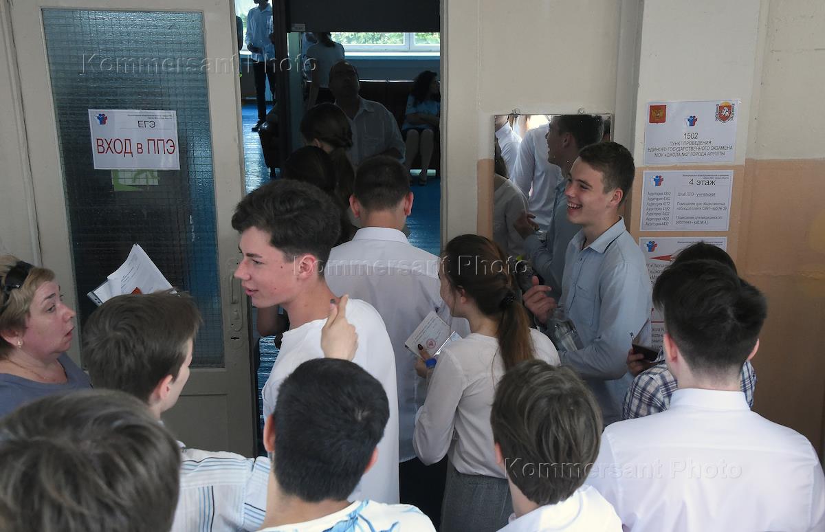 Сдача Единого государственного экзамена (ЕГЭ) для учеников 11 классов средних школ.