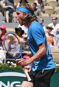 Открытый чемпионат Франции по теннису "Roland Garros 2019". День шестой. Греческий теннисист Стефанос Циципас во время матча против сербского теннисиста Филипа Краиновича.