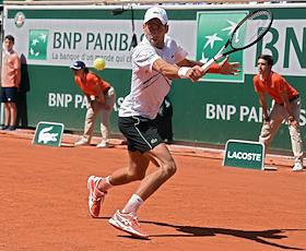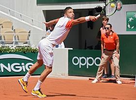 Открытый чемпионат Франции по теннису "Roland Garros 2019". День шестой. Сербский теннисист Душан Лайович во время матча против немецкого теннисиста Александра Зверева.