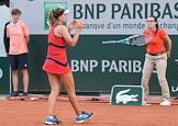 Открытый чемпионат Франции по теннису "Roland Garros 2019". День шестой. Испанская теннисистка Алена Большова-Задойнова (справа) после матча против российской теннисистки Екатерины Александровой.
