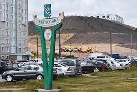 Жанровая фотография. Жилой район "Некрасовка". Дорожный указатель на въезде на территорию района. Полигон твердых бытовых отходов (ТБО) "Некрасовка"