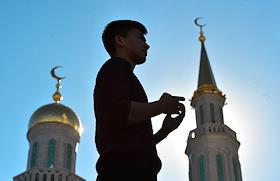 Праздник Ураза-Байрам. Верующие в Московской Соборной мечети.