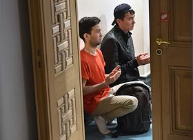 Праздник Ураза-Байрам. Верующие во время намаза в Московской Соборной мечети.