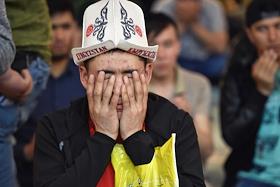 Мусульманский праздник Ураза-Байрам. Верующие во время намаза у Московской Соборной мечети.