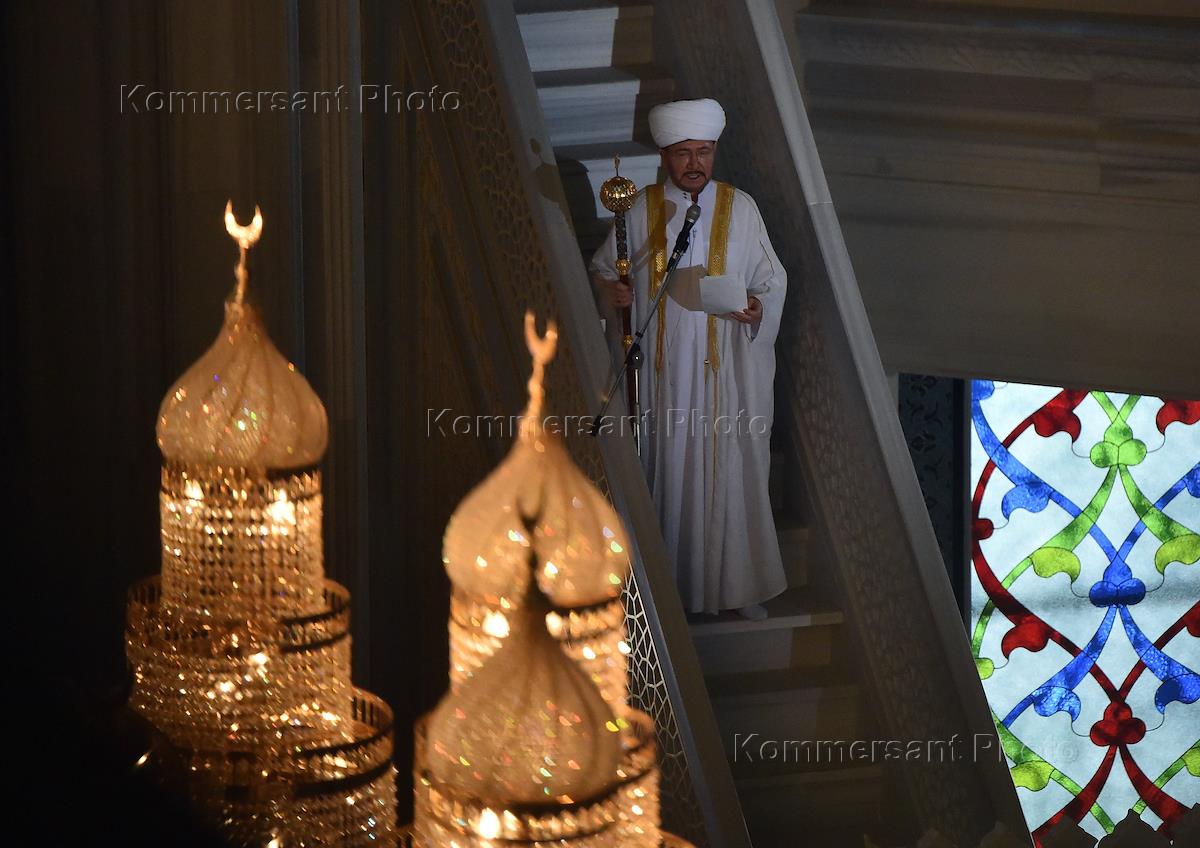 Праздник Ураза-Байрам. Председатель президиума Духовного управления мусульман европейской части России, председатель Совета муфтиев России шейх Равиль Гайнутдин в Московской Соборной мечети.