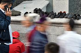 Мусульманский праздник Ураза-Байрам. Верующие во время намаза у Московской Соборной мечети.
