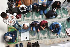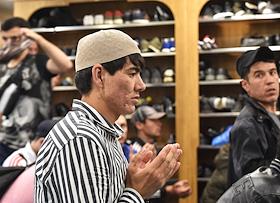 Праздник Ураза-Байрам. Верующие во время намаза в Московской Соборной мечети.