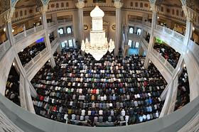 Мусульманский праздник Ураза-Байрам. Верующие во время намаза в Московской Соборной мечети.